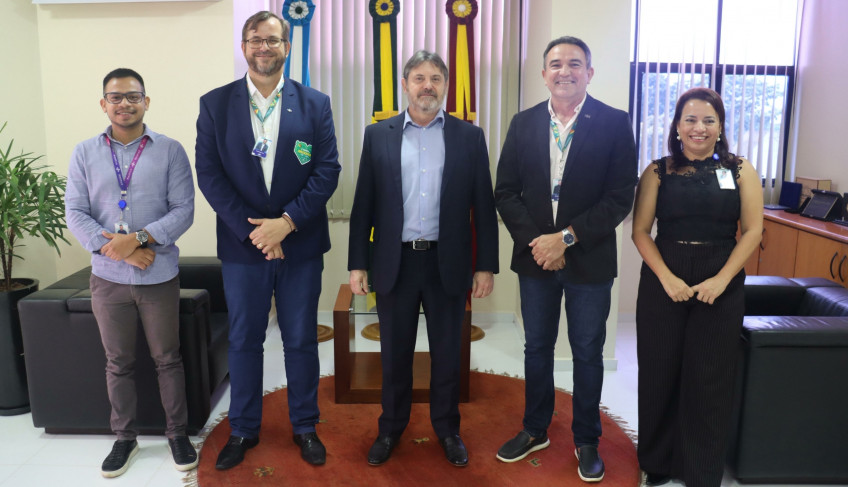 A articulação em prol do desenvolvimento da Amazônia ganhou um novo capítulo nesta quinta-feira (14), com a apresentação oficial do evento Amazontech ao Ministério Público de Roraima (MPRR). A reunião, realizada na sede do órgão, reforçou o compromisso com a integração institucional entre o Sebrae Roraima e o MPRR. Estiveram presentes o diretor superintendente do Sebrae, Emerson Baú, o diretor técnico, Doan Rabelo, e a gerente de políticas públicas Elissandra Costa, que se reuniram com o procurador-geral, Dr. Fábio Bastos Stica, para detalhar o maior evento de ciência e tecnologia da região.