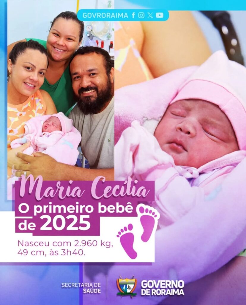 Na madrugada de 1º de janeiro de 2025, às 3h40, nasce o primeiro bebê roraimense do ano, Maria Cecília de Andrade Costa, que veio ao mundo no Hospital Materno-Infantil Nossa Senhora de Nazareth, do Governo do Estado. O nascimento de Maria Cecília marca o início de 2025 com muito simbolismo e renovação, trazendo alegria e […]