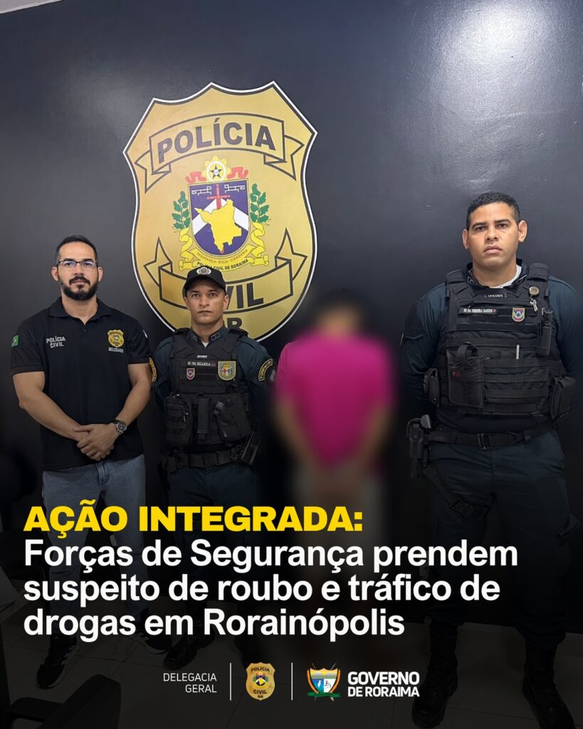 AÇÃO INTEGRADA: Forças de Segurança prendem suspeito de roubo e tráfico de drogas em Rorainópolis