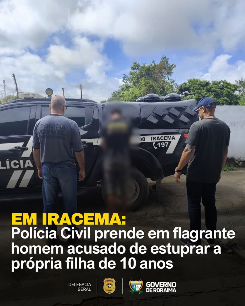 A Polícia Civil de Roraima, por meio da Delegacia de Rorainópolis, em ação conjunta com a Polícia Militar de Roraima, prendeu em flagrante J.R.P.A., 48 anos, suspeito de estupro de vulnerável contra uma menina de 11 anos. A ocorrência teve início após denúncia feita por familiares da vítima. Segundo o relato, a criança foi a […]