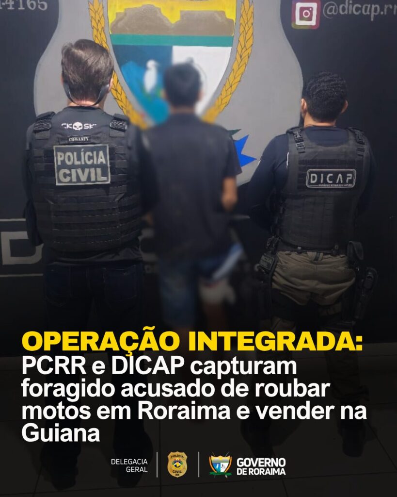 Operação Integrada entre PCRR e DICAP captura foragido acusado de roubar motos em Roraima e vender na Guiana