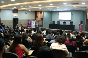 “É importantíssima essa capacitação junto com tantas instituições que trabalham em defesa da mulher, como o Ministério Público, força de segurança, Casa da Mulher Brasileira, OAB, todos aqui presentes, juntamente com a Secretaria Especial da Mulher, reforçando a lei do ‘Não é Não’, dizendo como seria essa atuação nas ruas e isso vai nos dar muito mais embasamento para que nós estejamos presentes também nas avenidas”, ressaltou.
