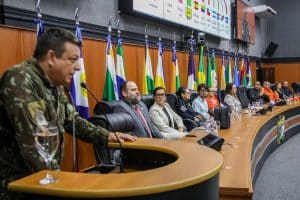 Em seguida, ocorreu uma exposição sobre a importância da Operação Acolhida para minimizar ações de tráfico humano, principalmente para os imigrantes. A palestra foi apresentada pelo subcomandante da força-tarefa logística humanitária em Roraima, coronel Athos Roberto Souza.