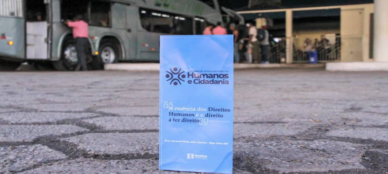 Passageiros e usuários da Rodoviária Internacional de Boa Vista recebem informações sobre tráfico humano
