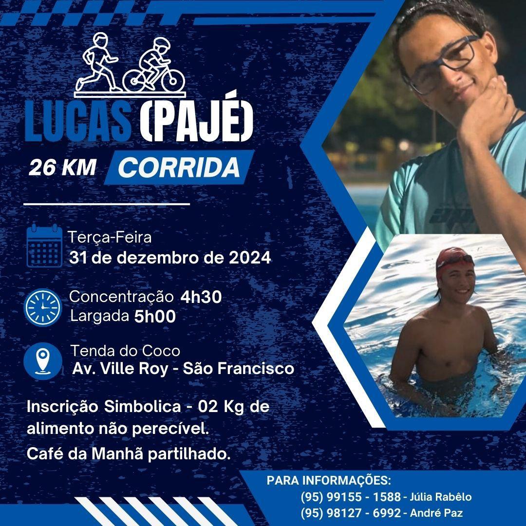 No último dia do ano, o centro de Boa Vista vai ser tomado por dezenas de participantes para mais uma edição da corrida ‘Lucas Pajé’. A largada será às 5h da manhã com concentração trinta minutos antes na Tenda do Coco, na Av. ville Roy, bairro São Francisco.
