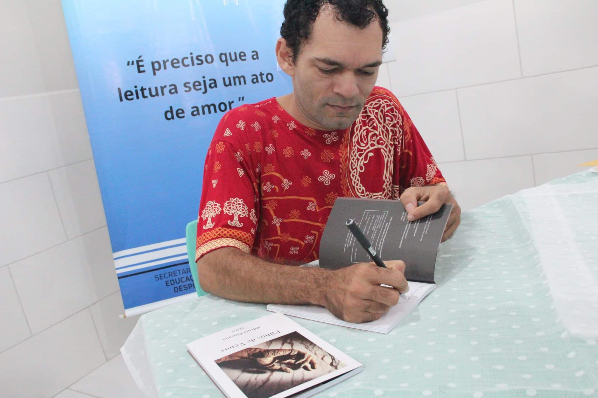 Aldenor e o titular da Secretaria de Educação e Desporto, Mikael Cury-Rad, assinaram o termo de doação dos livros, reforçando a importância do contato dos estudantes com a literatura produzida no Estado. A iniciativa faz parte das ações do Pecali (Programa Estadual Caminhada Literária), executada pela Seed.