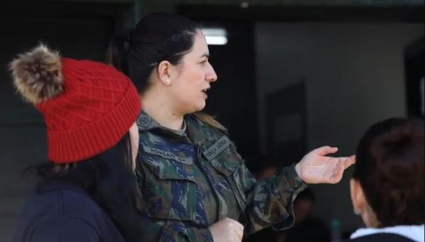 Em campo na Operação Taquari 2, a Tenente Assistente Social Letícia Costa cumpre a sua missão na Base Aérea de Santa Maria (BASM). O Serviço Social foi acionado pelo Comandante da Organização Militar no dia 30/04, quando foi montada uma tenda junto ao Grupo de Saúde da Aeronáutica presente na Base para atendimento aos resgatados. “O espaço consiste em acolhimento a essas vítimas e seus familiares, onde ofertamos o apoio social às primeiras necessidades dessas pessoas. Após a triagem feita pela equipe de saúde, nós oferecemos esse auxílio que consiste em alimentação, agasalhos e contatos com os familiares. Também é organizado o destino dessas pessoas, com quem elas vão nesse momento de fragilidade”, explica a militar.
