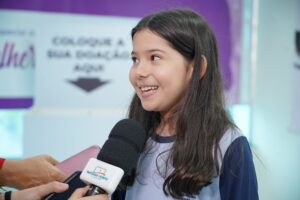 A estudante Helena Sara dos Santos Padilha, de 9 anos, emocionou as pessoas ao destacar o motivo que a fez doar e como se sentiu ao participar da campanha. “Eu fiquei feliz porque eu sei que outra pessoa vai ficar mais feliz ainda”, disse a aluna, ao destacar que pretende deixar o cabelo crescer para fazer uma nova doação.