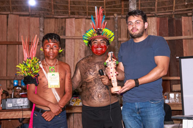 O MPI recebeu a estatueta Omama durante a Assembleia, que também foi entregue a representantes da Funai. Símbolo de resistência e luta, o artefato reconhece o trabalho feito até aqui e representa um pedido para que os órgãos do governo sigam no enfrentamento ao garimpo ilegal junto com os Yanomami. Omama é uma entidade guerreira que criou o povo indígena e sua similaridade com a estátua do Oscar é um lembrete de que o ouro pode ter sido extraído de forma ilegal do território Yanomami. Feita de barro, a estátua é entregue aos que lutam pela defesa dos direitos dos Yanomami.
