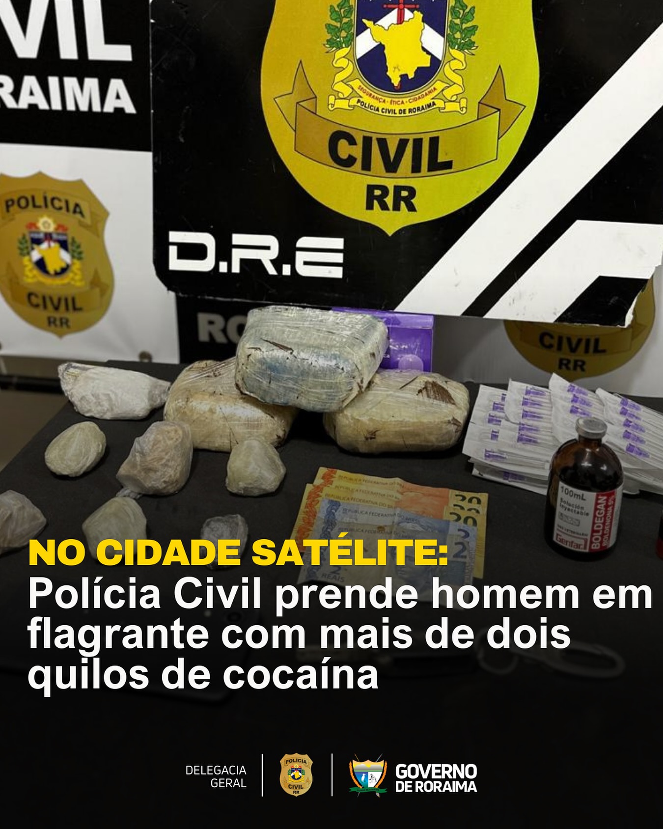 “O trabalho da DRE e do DENARC tem sido constante no sentido de sufocar a atuação de traficantes e reduzir a circulação de drogas em Roraima. Essa prisão demonstra o compromisso da Polícia Civil com a sociedade”, afirmou.